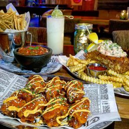 Such a comfortable place with some great music any large tvs playing sports. The Philly cheesesteak was pretty good. My husband raved about the lobster roll. The gametime platter was a hit for the kids with the exception of the quesadilla, which didn't have enough cheese. Service was a little tricky. You go up to a different place to order and then they bring the food to your table. Then run a separate tab for drinks from the bar. The lobster roll took forever to come out, but they brought a beer on the house so I consider that a win. Overall, the waitress, and the person who brought out the food were very friendly.